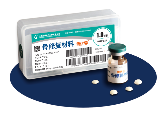 骨优导®作为九源基因核心产品,是以活性成分rhBMP-2为基础、实现精准定量的骨修复材料。该产品历经十年研发成功落地,是全国首个实现 rhBMP-2 产业化的成果。作为具备高诱导成骨活性的生物技术材料,骨优导®为骨修复临床领域提供了新的解决方案,为脊柱外科及骨修复领域发展注入动力。