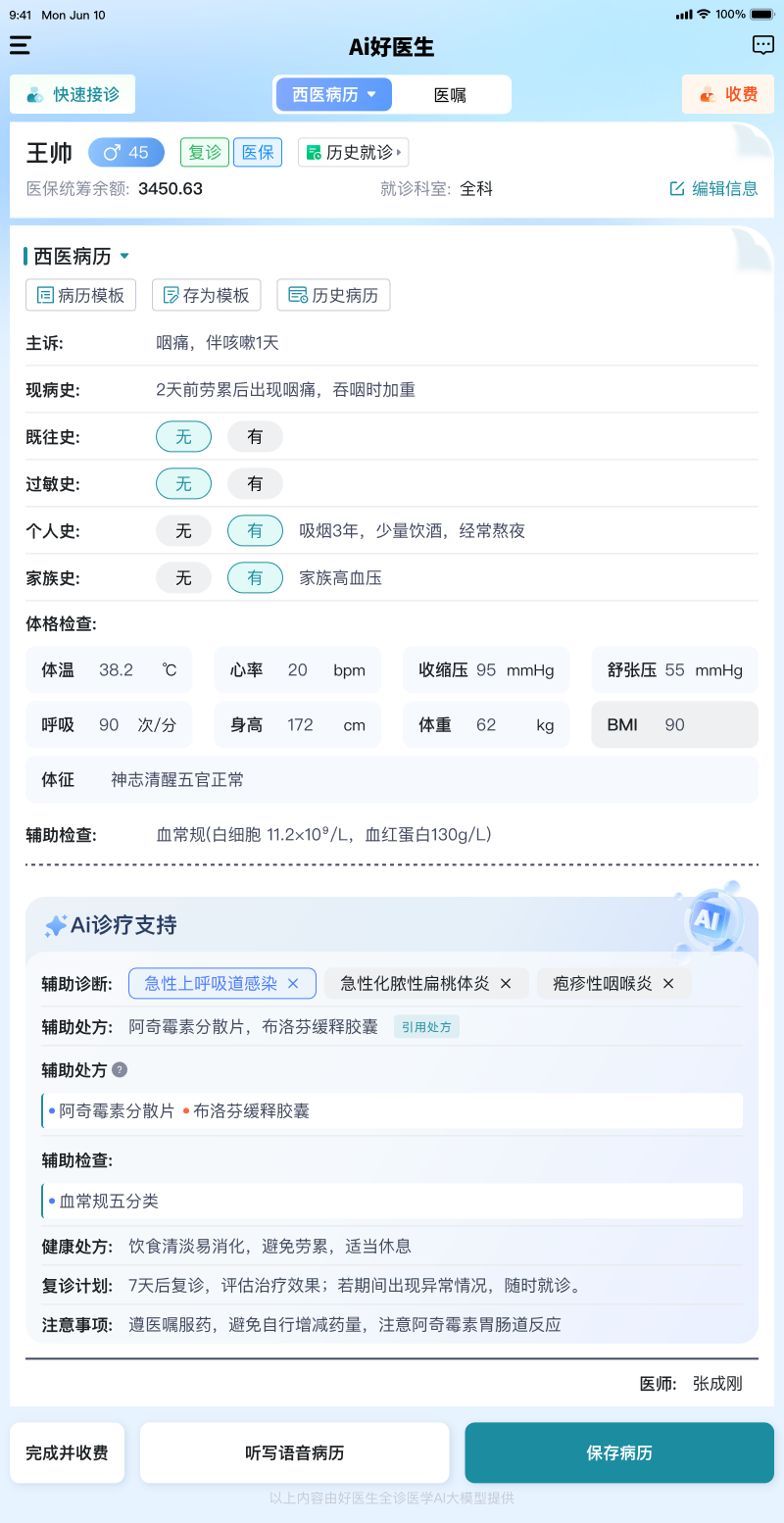 ● 病历书写“更懂行”: 基于获奖模型在“智能辅助病历撰写”维度的满分表现,系统在真实门诊嘈杂环境下的语音识别与病历生成准确率已达行业顶尖。